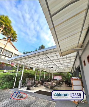 Atap Alderon diperkuat dengan formula pelindung UV melindungi dari sinar Ultra Violet dan cuaca yang tidak menentu membuat tahan lama, tidak mudah pecah dan menjaga warna tetap indah dalam jangka waktu yang lama.